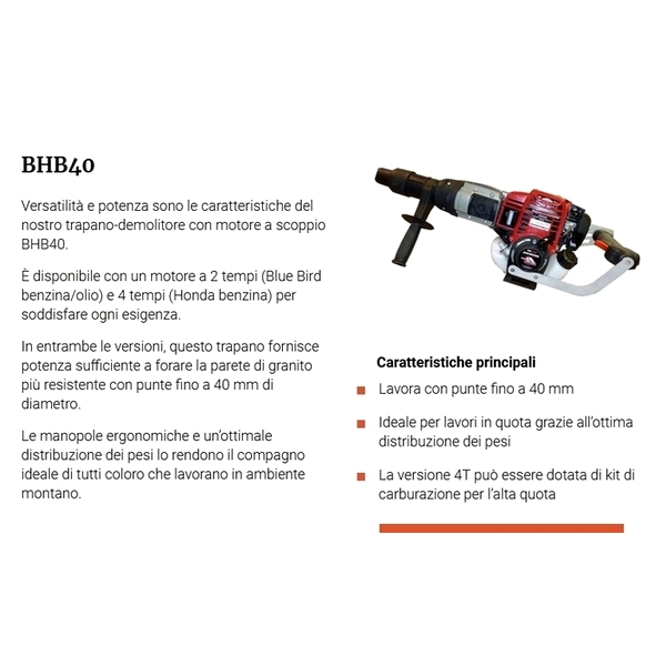 BHB40 4T is the new drill that replaces HB40 and that can mount 4-stroke engines.